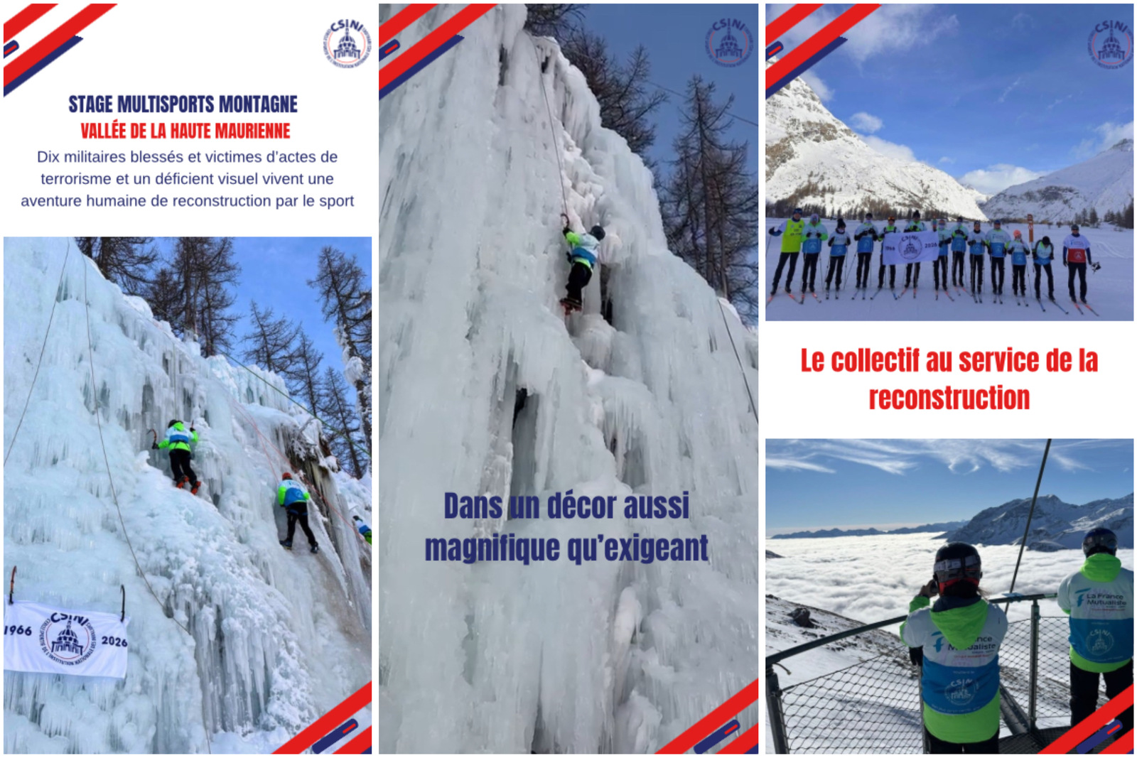 🇫🇷 Sous les couleurs de notre partenaire La France Mutualiste, dix blessés militaires et victimes d’actes de terrorisme, accompagnés d’un adhérent déficient visuel, ont découvert les paysages et les exigences de la montagne hivernale, entre Val Cenis, Bessans et Bonneval-sur-Arc.