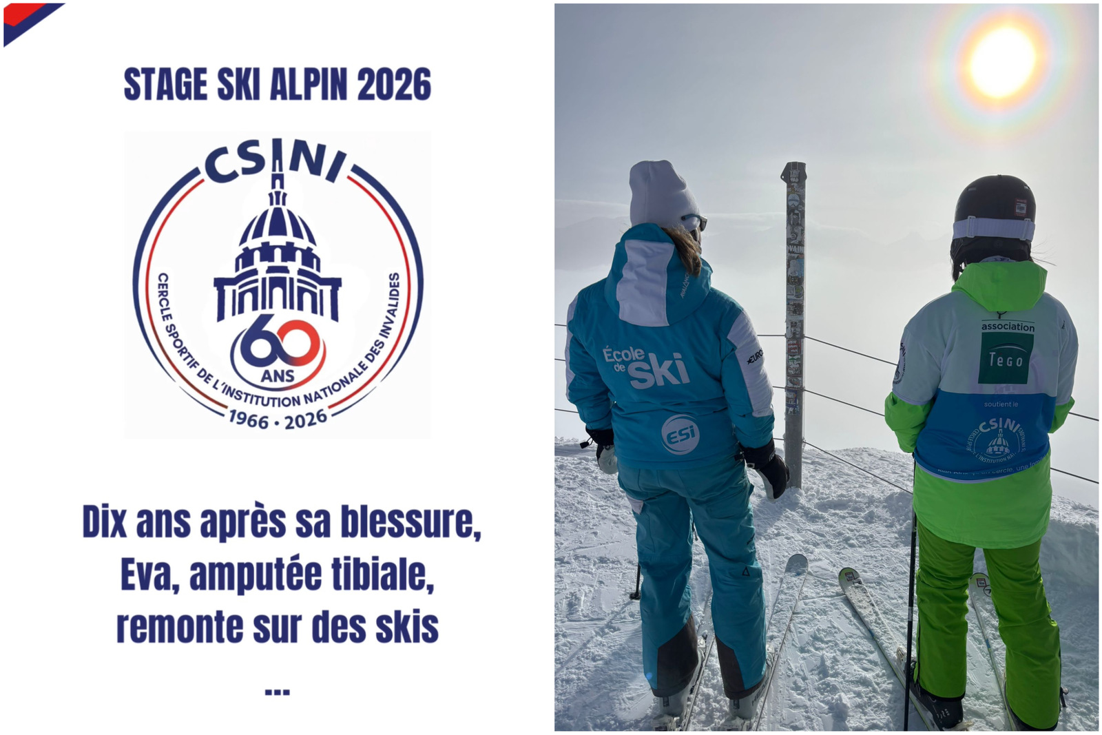 ⛷️Amputée tibiale depuis dix ans, Eva n’était jamais remontée sur des skis depuis sa blessure. Dans le cadre du stage de reconstruction par le sport en ski alpin, organisé par le CSINI, elle a relevé ce défi symbolique et personnel.