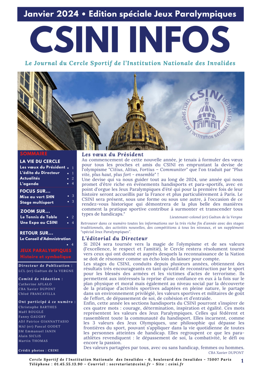 Parution du nouveau CSINI Infos, édition spéciale Jeux Paralympiques Paris 2024.